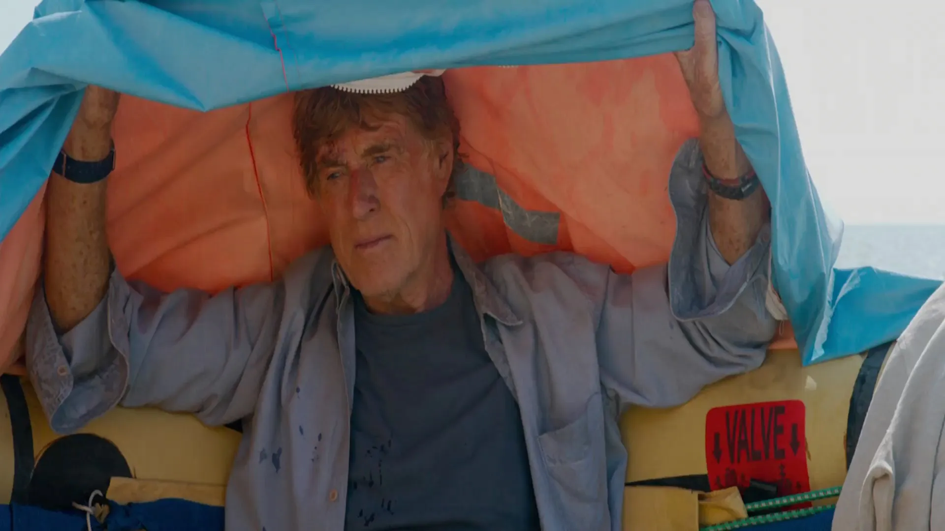 During a solo voyage in the Indian Ocean, a veteran mariner awakes to find his vessel taking on water after a collision with a stray shipping container. With his radio and navigation equipment disabled, he sails unknowingly into a violent storm and barely escapes with his life. With any luck, the ocean currents may carry him into a shipping lane -- but, with supplies dwindling and the sharks circling, the sailor is forced to face his own mortality.